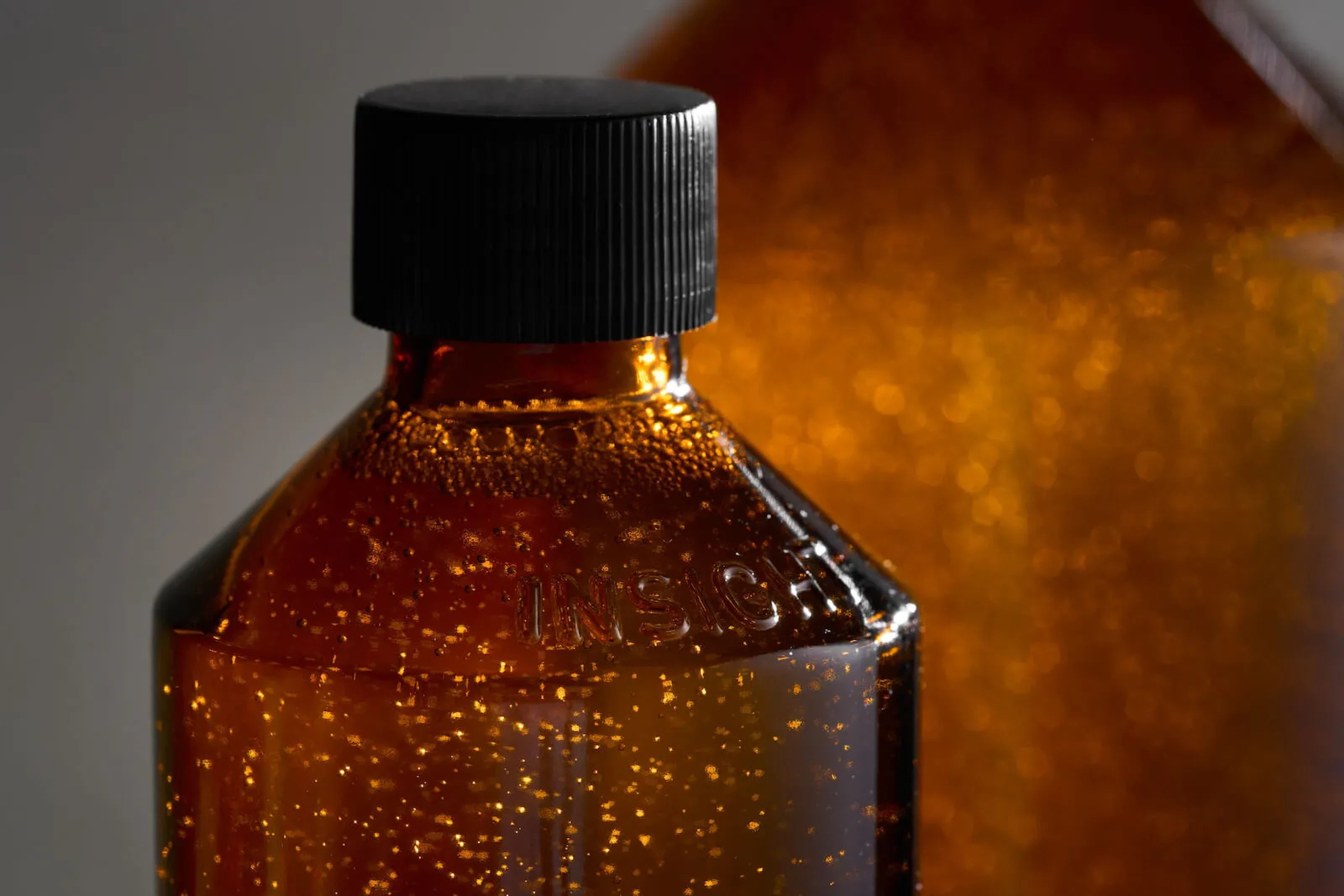 Onze gepolijste glazen flessen en potten in warm amber liggen prettig in de hand en beschermen de inhoud tegen schadelijke UV-straling.
